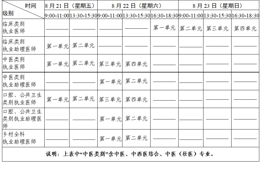 根据《中华人民共和国医师法》和《医师资格考试暂行办法》规定,2026年将在全国举行医师资格考试。临床、口腔、公共卫生类别和乡村全科执业助理医师医学人文部分启用修订后的考试大纲。现就有关事项公告如下: 考试报名包括网上报名和现场审核两个部分。 网上报名时间自2026年1月29日10时至2026年2月11日24时。请考生按有关规定如实准确填报个人信息。2025年在国家实践技能考试基地参加实践技能考试,成绩合格但未通过当年医学综合考试的考生,2026年网上报名成功、资格审核通过并缴纳考试费后,可直接参加医学综合考试。 现场审核时间为2026年2月27日至2026年3月12日,具体事宜可咨询报名所在地考点办公室。 请考生注意安排好网上报名和现场审核时间。 全国考试时间如下: 实践技能考试由各省、自治区、直辖市医师资格考试领导小组组织实施,原则上在国家实践技能考试基地进行。实践技能考试合格分数线为60分。在国家实践技能考试基地参加考试且成绩合格者,成绩两年有效。 考试实行计算机化考试,军队现役人员、文职人员加试军事医学,院前急救岗位和儿科专业加试相应内容。中医类别藏医、蒙医、维医、哈萨克医专业实行纸笔考试。统一考试时间如下: 除藏医、蒙医、维医、哈萨克医、中医(壮医)专业外,执业医师合格分数线为360分,执业助理医师合格分数线为180分。 以上中医、藏医、蒙医、维医、哈萨克医、中医(壮医)专业均包含具有规定学历、师承或确有专长。 2026年在医师资格考试临床类别、中医类别具有规定学历中医实施医学综合考试第二试。已报考当年医师资格考试,实践技能考试合格成绩在有效期内,未通过医学综合考试第一试且无违纪违规行为的考生或医学综合考试第一试缺考及未缴纳考试费的考生,可报名参加医学综合考试第二试。考生网上报名及缴纳考试费时间为9月20日—26日。 统一考试时间如下: (一)按照傣医、中医(朝医)专业两年开考一次的原则,2026年不组织中医类别傣医、中医(朝医)专业考试。 (二)2026年继续开展中医类别哈萨克医考试试点。符合报名条件的考生按有关规定报考。 (三)医学专业工作实践证明存疑的考生,应按所在考区要求提供相应辅助证明材料。 (四)医学综合考试第一试9月19日开通成绩查询,医学综合考试第二试11月27日开通成绩查询。 (五)医师资格考试报名资格有关规定及考试相关信息,可登录国家卫生健康委和国家中医药管理局网站查询,或者登录国家医学考试网和中国中医药考试认证网查询。 国家卫生健康委网址:http://www.nhc.gov.cn/; 国家中医药管理局网址:http://www.natcm.gov.cn/; 国家医学考试网网址:http://www.nmec.org.cn/; 中国中医药考试认证网网址:https://www.tcmtest.org.cn/。一、考试报名